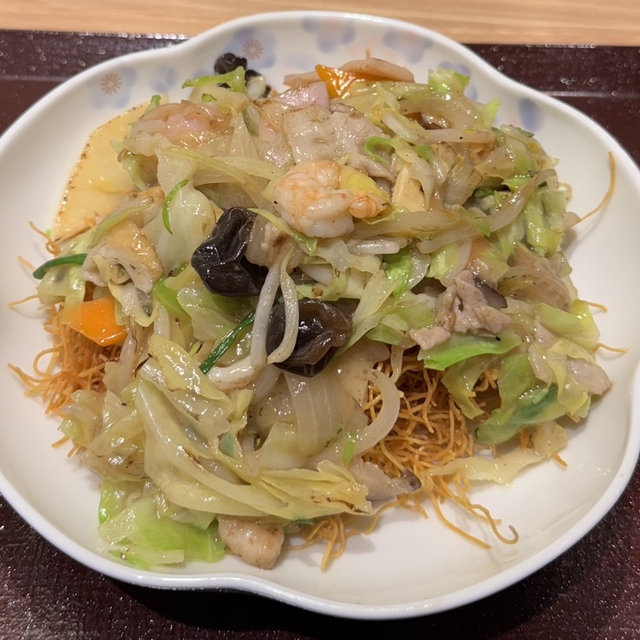 出汁の効いた餡とパリパリの細麺でいつも食べるリン〇ーハッ〇の皿うどんとは桁違いの美味しさでした(笑)